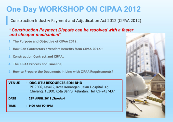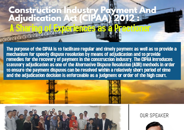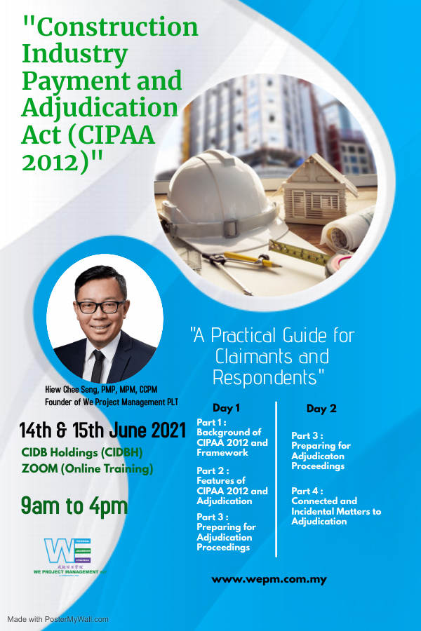 Construction Industry Payment and Adjudication Act 2012 - A Sharing of Experience as a Practitioner. 18 & 19 Nov 2019